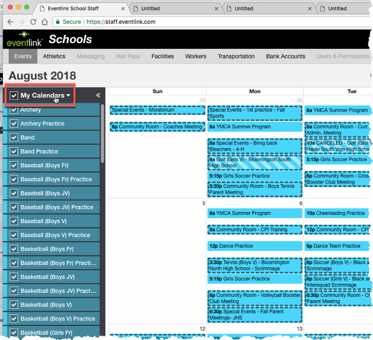 Click "My Calendars"
