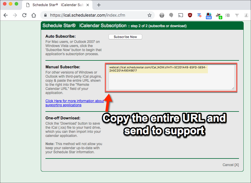 On the next page, copy the entire URL in the box (see below) and send an email with this information to